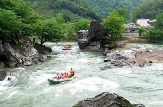 怪潭漂流區(qū)位于秋浦河最上游,是江南最早開發(fā),最長漂程,最具刺激,最大規(guī)模的漂流區(qū)。怪潭景點很具特色,兩岸綠樹成蔭,怪石嶙立;河道曲折蜿蜒,水流喘急,是十分理想的漂流場所,被游客贊譽為“皖南第一漂”。