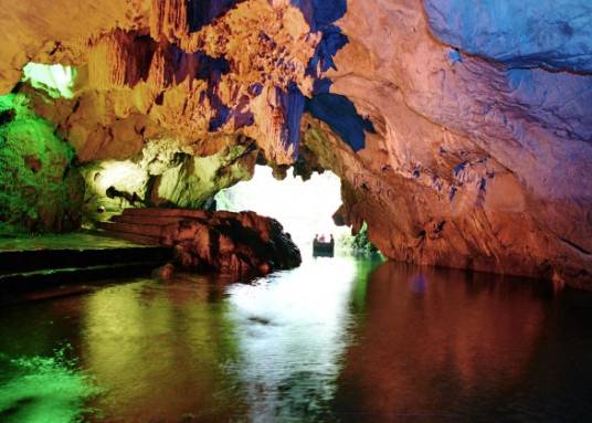 蓬萊仙洞是一個多層次、多階段、多堆積形態(tài)的大型溶洞,全長3000余米,總面積2萬多平方米,呈立交結(jié)構(gòu),分天洞、中洞、地洞、地下河四層結(jié)構(gòu)。主要景點有迎賓廳、探海長廊、東海龍宮、通明宮、迷仙宮、玉嬋宮、銀河長廊、瑤池、南海、潮音殿、送客廳等10多個景點。蓬萊仙洞風(fēng)景區(qū)是國家AAAA級旅游景區(qū),省級風(fēng)景名勝區(qū)。