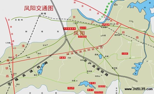 交通運輸快速便捷。境內(nèi)有京滬和淮南兩條鐵路經(jīng)過70公里,設(shè)立8個站點;省道101、307公路和合徐、蚌寧高速公路穿過縣境長度1720公里;淮河過境50公里,并設(shè)有臨淮船運碼頭,河道最深可通過吃水11米的船舶;鳳陽縣城距蚌埠機(jī)場20公里、合肥130公里、南京150公里;縣鄉(xiāng)公路通車?yán)锍?500公里,密度達(dá) 1.24公里/平方公里。