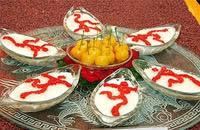 上窯粗條馓子,也稱“油果”、“油面條”。(上窯、洛河一帶較為多見)用面粉、明礬、精鹽、白糖等和成油面,把油面盤擰成網被形,下入油鍋中浸炸定形,成品后有乳白色、淡黃色、金黃色。具有軟、脆、焦、酥、香、鮮、咸、微甜等特點。它可直接食用,也可燴、涮、淡季制餒,可做主料、輔料。