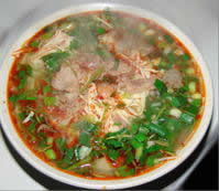 淮南牛肉湯選料講究,取制江淮一帶的黃牛為原料,用牛骨頭熬湯,煮牛肉時必須浸泡血污,內臟清洗干凈,均可下鍋同煮,還用自制的牛油,將炸制好淮椒(紅干椒)做成紅油。牛肉湯故以湯為主,湯不醇則無味,然牛肉湯的燙制方法多樣,都取用當地特產,淮芋粉、綠豆餅、豆腐皮(干章、百頁)、豆圓子等為輔料;茨吓H鉁o人的感覺是:湯濃醇鮮,香辣適口,原料豐富,味足味厚,令人回味無窮,四季皆宜。