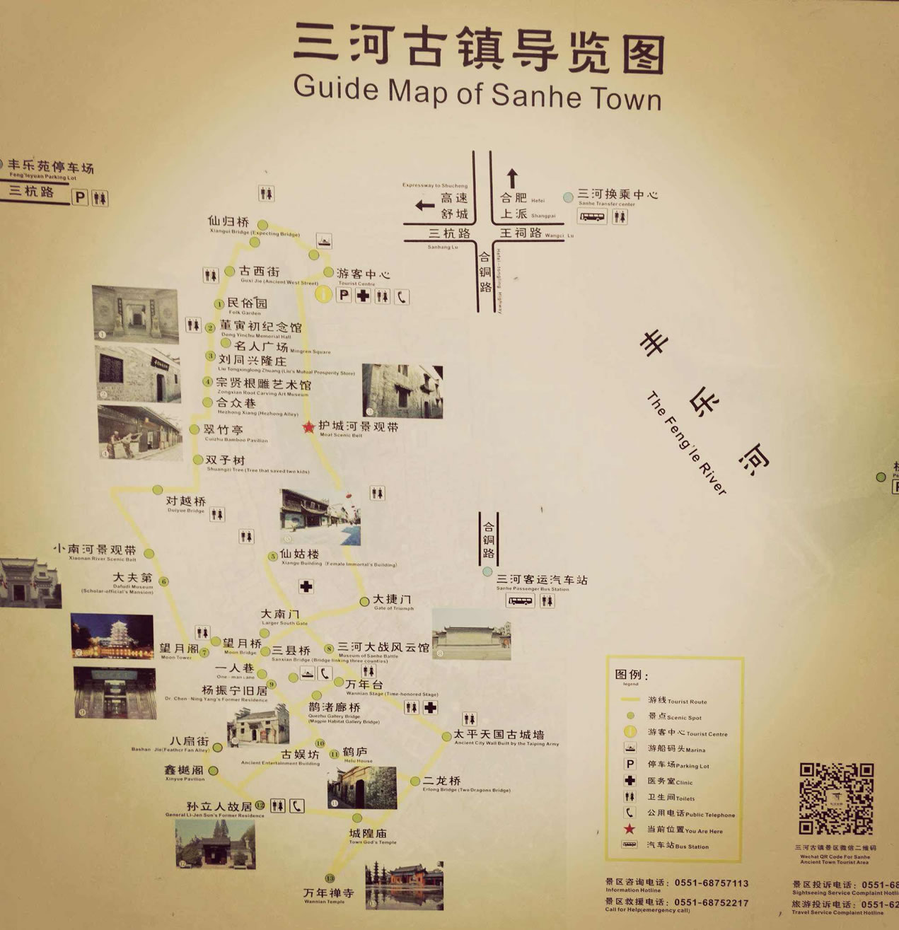 三河古鎮(zhèn)有豐樂河、杭埠河、小南河在境內(nèi)匯合,經(jīng)新河向東流約15公里入巢湖。鎮(zhèn)內(nèi)有古城墻、古炮臺(tái)、太平軍指揮部舊址、英王府、一人巷、萬年臺(tái)、李府糧倉、鶴廬、劉同興隆莊等歷史遺跡,是廬劇的發(fā)源地,古鎮(zhèn)有米餃、牛皮糖、酥糖、麥芽糖、茶干、米酒等特產(chǎn)。
