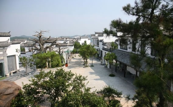 徽州文化村是五千年文博園為了展示和弘揚徽州文化,將非常有特色的徽州文化精華濃縮在此。其以農(nóng)家樂、農(nóng)家風情為主題,由6座不同風格的徽派建筑組成。這些徽派建筑的房屋將會打造成農(nóng)家土菜館和賓館,為游客的餐飲和住宿提供了方便。農(nóng)家樂土菜館,將徽州石雕、徽州版畫、徽州篆刻、新安畫派、徽派盆景融于其中,游客們在受到徽州文化熏陶的同時還可以在這里品嘗到美味的徽菜,面對著青山碧水,游客會得到悠閑恬靜的感受。