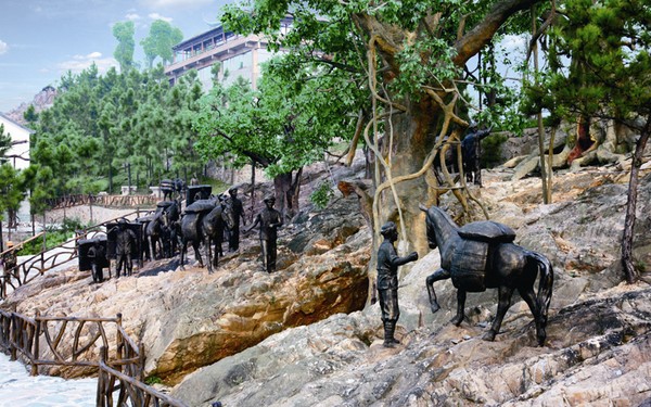 五千年文博園復原茶馬古道滇藏路線一段,設麗江客棧、香格里拉客棧,長500米。古道依山體而建,以人物雕塑、實景微縮的形式,打造出馬幫、背夫、牦牛在崇山峻嶺間穿梭,翻山越嶺、長途跋涉的意境。形象逼真、栩栩如生,再現(xiàn)了辛勤的馬幫日復一日、年復一年,用生與死開辟出一條通往域外的經(jīng)貿(mào)之路,一條人文精神的超越之路,也因此歌頌那些為藏漢民族的團結和興旺作出貢獻的人們。