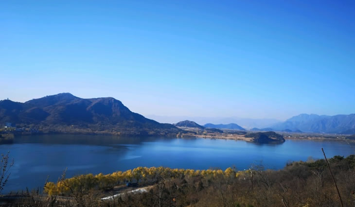 十三陵水庫 十三陵水庫位于北京市昌平區(qū)十三陵鎮(zhèn),水庫建于1958年。為山區(qū)盆地水庫,占地面積751公頃,其中陸地面積440公頃,水面311公頃。水庫四周群山矗立,兩岸有大片臺(tái)地、坡地,水面平穩(wěn),水深變化較小。水面受開闊度、水深和不同環(huán)境色彩影響,顯現(xiàn)出不同景觀效果。如在大壩附近,山高水深,水面倒映山影。而水庫上游,水面寬闊、岸坡平緩,視野開闊,在夕陽映照下,遠(yuǎn)山連綿,近水蕩漾。那點(diǎn)綴在遠(yuǎn)山近水之間的片片果林及點(diǎn)點(diǎn)皇陵,更增添了一層飄忽不定的朦朧色彩。