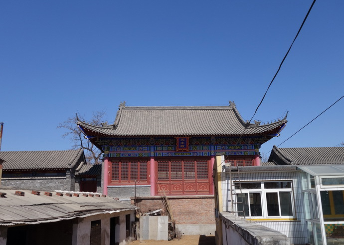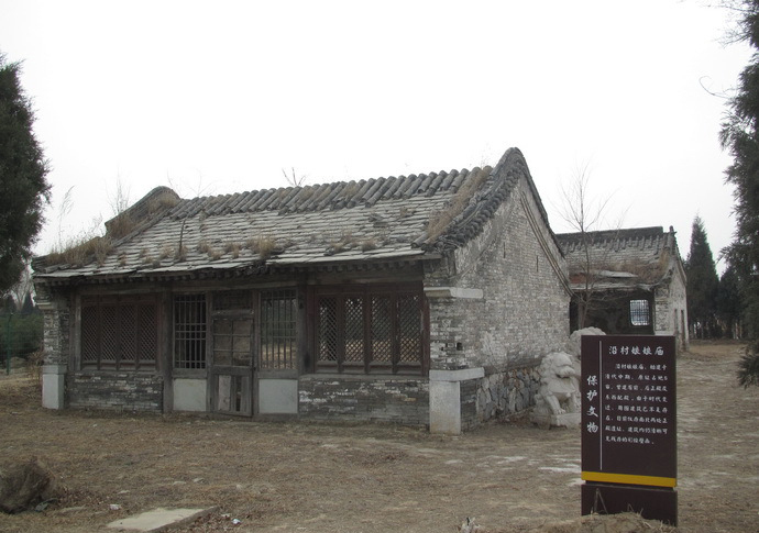 沿村娘娘廟 沿村娘娘廟始建于明代,清代中期重修,2011年在拆除村辦企業(yè)大棚后顯露出來。依地勢坐南朝北。原為四合式,由于時代的變遷,周圍建筑已不存,現(xiàn)僅存前、后兩進殿宇,前殿為硬山筒瓦卷棚頂,前后出廊;后殿為硬山筒瓦大式,前出廊。兩進殿均為石望板頂,廊心墻處為軟心,梁檁彩繪及壁畫仍清晰可見。
