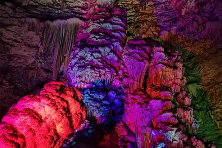 云水洞 云水洞位于上方山國家森林公園內(nèi),洞口海拔530米,為串珠狀近水平洞穴,是北京開發(fā)最早的溶洞。已探測(cè)的洞道長(zhǎng)度613米,有7個(gè)大廳、108個(gè)自然形成的巖溶景觀。其中最著名的景觀“擎天柱”發(fā)育于第2洞廳,是一個(gè)高38米、直徑8米的巨型石筍,是全國石筍之冠。石筍兩側(cè),有一排厚薄和長(zhǎng)短各異的石鐘乳,可敲打演奏出許多優(yōu)美動(dòng)聽的樂曲。