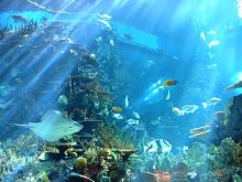 主要展品:鞭蝴蝶、長吻鼻魚、多帶蝴蝶、副刺尾魚、?⒑qR、黃高鰭刺尾魚、藍綠光鰓、藍紋蝴蝶、鐮蝴蝶、牛角、六斑刺鲀、珊瑚、石斑魚、石頭魚、鲀科魚、心斑刺尾魚、小丑魚、熊貓龍、醫(yī)生魚。