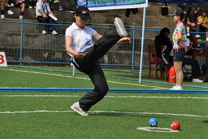 蹴球(踢石球) 蹴球起源于清代的“踢石球”,主要流行于滿、蒙古、回等民族中。蹴球是用腳底“踹”球,以擊中對方球為勝,極具趣味性和觀賞性。 蹴球比賽時,參賽者腳跟著地,腳掌觸球,用力踢球,以擊中對方球或把對方球擊出場外為得分。所踢之球為直徑10厘米的硬塑料實心球,分為紅藍(lán)兩色。因為蹴球的競賽規(guī)則類似臺球,所以蹴球也被稱為“用腳踢的斯諾克”。 2007年6月20日,蹴球(踢石球)被北京市人民政府公布為北京市第二批市級非物質(zhì)文化遺產(chǎn)名錄。 風(fēng)景名勝