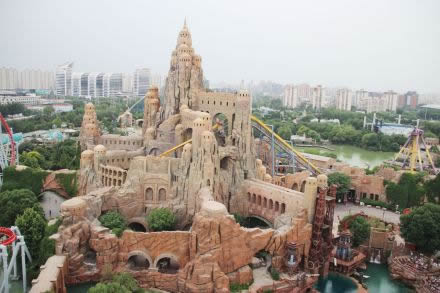水晶圣城:60余米高聳的亞特蘭蒂斯水晶圣城被賦予開(kāi)門(mén)見(jiàn)山、主導(dǎo)全局的功能,是北京歡樂(lè)谷的標(biāo)志性景觀,也是公園的制高點(diǎn)。 亞特蘭蒂斯人的水晶圣城不但是水晶的開(kāi)采加工中心,同時(shí)也是將智慧與能量輸入水晶并不斷積累的寶庫(kù)。