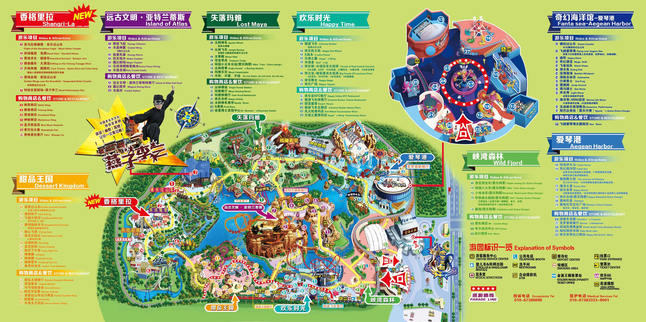 北京歡樂(lè)谷由峽灣森林、愛(ài)琴港、失落瑪雅、香格里拉、甜品王國(guó)、亞特蘭蒂斯、歡樂(lè)時(shí)光、七大文化主題區(qū)(另外還有位于愛(ài)琴港的奇幻海洋館、歡樂(lè)世界主題漂流三期項(xiàng)目)組成,通過(guò)主題文化包裝及故事演繹,以建筑、雕塑、園林、壁畫(huà)、表演、游樂(lè)等多種形式向游客展示了地球的生態(tài)環(huán)境與地域文化,園區(qū)內(nèi)精選世界經(jīng)典文明和創(chuàng)意智慧,設(shè)置了50余項(xiàng)主題景觀、10余項(xiàng)主題表演、30多項(xiàng)主題游樂(lè)設(shè)施、20余項(xiàng)主題游戲及商業(yè)輔助設(shè)施。30多萬(wàn)平方米的綠化、8萬(wàn)平方米的湖面給予歡樂(lè)谷良好的生態(tài)環(huán)境;七大主題區(qū)域給予歡樂(lè)谷世界各地的人文氣質(zhì);并且具有國(guó)際國(guó)內(nèi)雙重標(biāo)準(zhǔn)的安全檢測(cè)、人性化的服務(wù)配套和智能化的全園信息系統(tǒng)。。