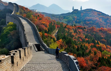 居庸關長城建在一條長達15公里的山谷間,兩旁山巒重疊,樹木蔥郁,山花爛漫,景色瑰麗,遠在800年前的金代,就被列為燕京八景之一,稱為“居庸疊翠”。居庸關是從北面進入北京的門戶,有“一夫當關,萬夫莫開”的氣勢。居庸關的中心還保存著一個雕刻精美的漢白玉石臺“云臺”。在元朝時,臺上建有三座石塔,于元末明初被毀。三塔被毀后,在此臺上又建一院“泰安寺”,此寺于清康熙年間被火焚毀,只剩下這個基座——云臺。云臺的券門內,石壁上雕刻有四大天王像,姿態(tài)傳神;還刻有梵文、藏文、蒙文、維吾爾文、西夏文、漢文六種文字組成的佛經。