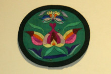 這里展出中華民族園收藏的——肚兜、圍嘴、耳套、粉撲四小品,征集于山西、陜西、貴州、東北、北京等地。展品年代從明代至近代約四百年歷史。展出的藏品包括:繡花粉撲和暖耳耳套。