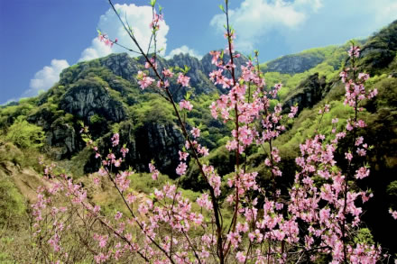 桃源仙谷風(fēng)景區(qū),位于密云區(qū)石城鎮(zhèn)境內(nèi)。整個(gè)景區(qū)可觀賞景點(diǎn)達(dá)80余處,山巒連綿,峽谷幽深,森林茂密。湖、瀑、潭、洞遍布景區(qū),四季美景如畫。桃花浪漫時(shí),溯溪而上,宛如置身于桃花源。景區(qū)內(nèi)孝悌教育基地以巖壁為依托,用雕刻的工藝,形象化地宏揚(yáng)了中國傳統(tǒng)美德。景區(qū)峽谷森林茂密,潭瀑眾多,山峰雄偉,一湖六瀑十三潭,天畫三峰四洞連,近看長城似長龍,遠(yuǎn)望云海奇景觀,構(gòu)成了一幅世外桃源的天然風(fēng)景畫廊。