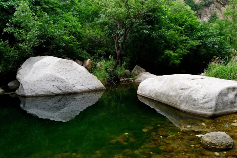 黑龍?zhí)毒皡^(qū) 黑龍?zhí)毒皡^(qū)位于石城鎮(zhèn)鹿皮關(guān),景區(qū)是一條峽谷走廊,全長4公里,總面積9平方公里。峽谷俗稱轱轆峪,蜿蜒曲折,兩壁陡峭奇聳,峰巒疊嶂。景區(qū)共有懸潭、沉潭、落雁潭、通天瀑、平沙潭、曲潭、滴水潭、葦潭、三疊潭、龍戲潭、珍珠串、三潭疊瀑、無底潭、黑龍真潭以及龍門口、龍劈石、刺猬石等30多個景觀,如顆顆明珠鑲嵌在峽谷中。