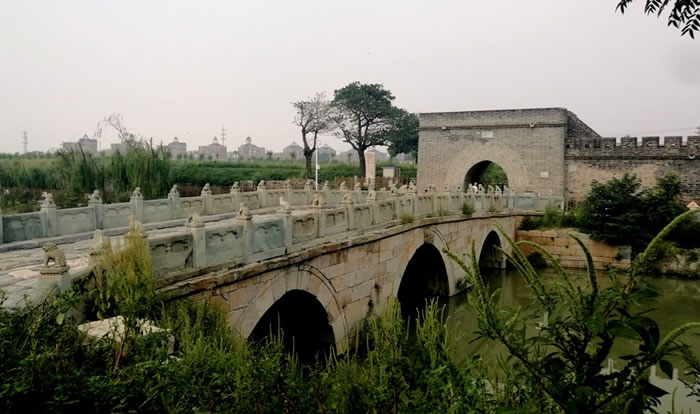 張家灣城墻及通運(yùn)橋 通運(yùn)橋位于通州張家灣南門(mén)外,因橫跨在蕭太后河上,又稱蕭太后橋。原為木橋,明萬(wàn)歷三十三年(1605年)神宗敕建石橋,名“通運(yùn)”。清咸豐元年(1851年)曾小修。橋南北向,全長(zhǎng)13丈,寬3丈。橋身兩邊欄板內(nèi)外兩面均有浮雕寶瓶,線條簡(jiǎn)捷,刀法流暢,瓶紋有別。望柱上的石獅雕刻精美,神態(tài)各異。 張家灣鎮(zhèn)城建于明嘉靖四十三年(1564年),四面設(shè)門(mén),F(xiàn)古城尚存南面城墻遺跡。通運(yùn)橋與城墻遺跡是研究北京通惠河水利工程和張家灣古鎮(zhèn)民風(fēng)民俗的實(shí)物。 2013年,“張家灣城墻及通運(yùn)橋”作為大運(yùn)河北京段的一部分,被并入全國(guó)重點(diǎn)文物保護(hù)單位大運(yùn)河內(nèi)。 2014年6月,京杭大運(yùn)河列入《世界遺產(chǎn)名錄》,成為中國(guó)列入《世界遺產(chǎn)名錄》的第46個(gè)項(xiàng)目。