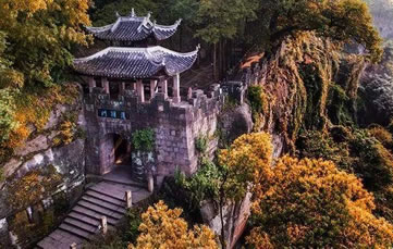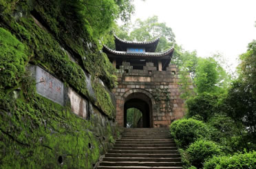 護國門重慶十大標志性旅游景觀之一。護國門為釣魚城的標志性建筑,位于城南第二道防線上,在釣魚城題刻的右側(cè)上部。在釣魚城8座城門中,護國門是規(guī)模最大的一道雄關(guān),城門洞高3.24米,寬2.45米,進深6.42米。城臺上為重檐歇山頂式城樓,高7米。其樓北倚峭壁,南臨懸崖,旁有古榕交柯,蔚為壯觀。當(dāng)年,釣魚城軍民曾在護國門前面的峭壁上開鑿石穴,架梁鋪木,施以棧道出入。情況緊急之時,可迅速地將橫梁上的木板抽掉,使其通道斷絕,猶如我國北方古城的城門吊橋。如今,棧道石穴猶存。在護國門平頂門道南壁和后門洞東側(cè),還保留有宋代的城門構(gòu)件和登城的石級。