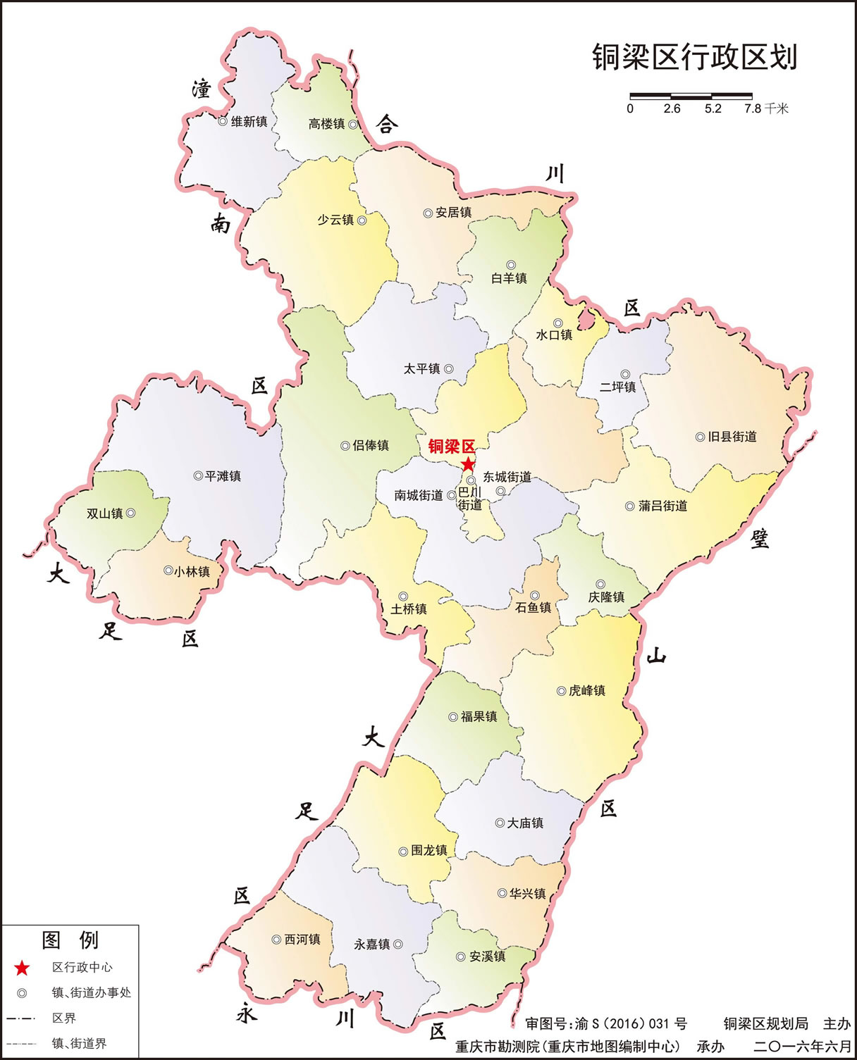 銅梁區(qū)轄5個(gè)街道、23個(gè)鎮(zhèn):
