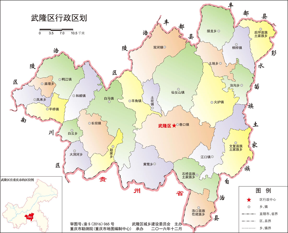 武隆區(qū)管轄4個街道、10個鎮(zhèn)、8個鄉(xiāng)、4個民族鄉(xiāng):