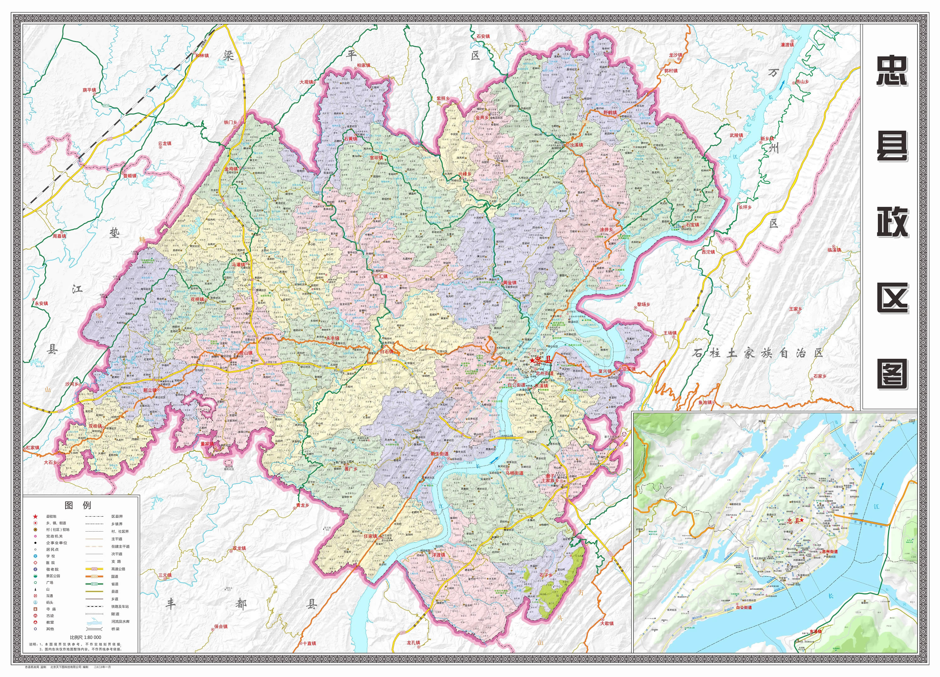 忠縣轄4個(gè)街道、19個(gè)鎮(zhèn)、6個(gè)鄉(xiāng):