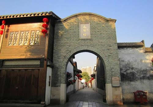 衣 錦坊是“三坊”中的第一坊,舊名通潮巷。據(jù)清《榕城考古略》記載:宋朝的“陸蘊、陸藻兄弟典鄉(xiāng)郡居此,名祿錦,后王益祥致江東提刑任,更名衣錦。”宋時稱“祿錦”,明朝更為“衣錦”,其實都是說坊內(nèi)有人在外出仕做大官,之后衣錦還鄉(xiāng),榮耀鄉(xiāng)里,所以坊名也改為了“衣錦”。過去稱“通潮”,則是因為這個地方是水網(wǎng)地區(qū),福州西湖、南湖的潮水可以通到這個坊巷的溝渠里去。坊中16號為清嘉慶進士鄭鵬程居宅,其中的衣錦坊水榭戲臺最具特色。這是一個木構(gòu)單層平臺,四柱單開間,下建清水池塘,中隔天井,正面為閣樓。于此觀看戲劇演出,水清、風(fēng)清、音清,具有聲學(xué)原理和美學(xué)價值,是福州市現(xiàn)存的水榭戲臺。