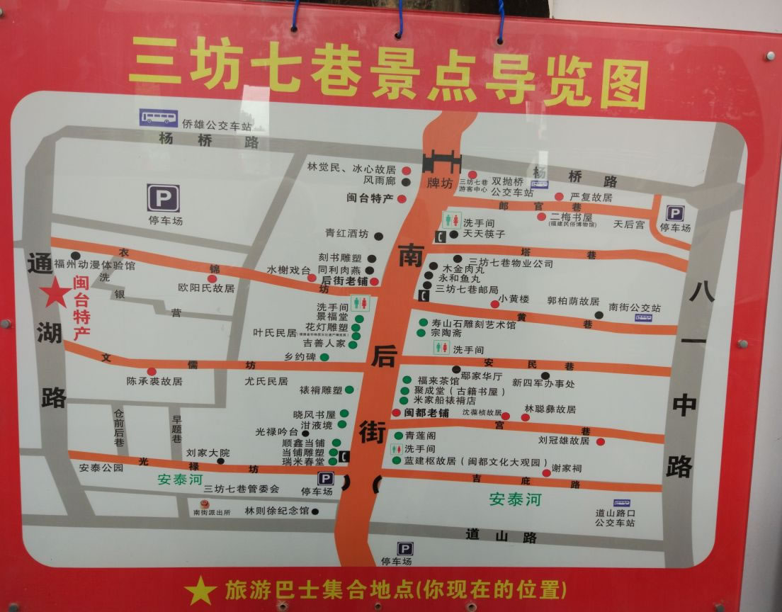 福州南后街北起楊橋路口,南至吉庇路達澳門橋,全長1000米左右,是福州城內(nèi)“三坊七巷”的中軸。它的東側(cè)有七巷,西側(cè)有三坊,是從福州三坊七巷興起至民國期間主要的商業(yè)街,由北到南路面商賈云集。