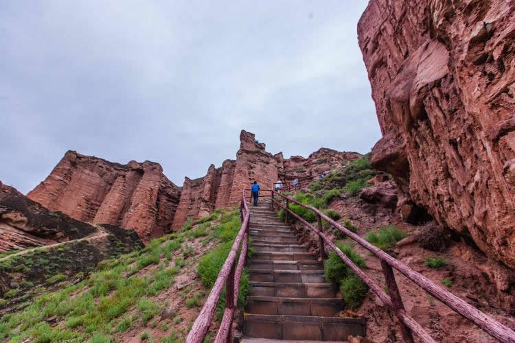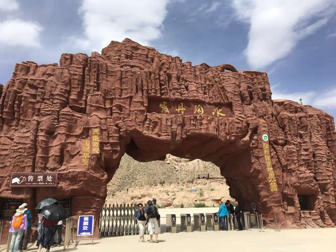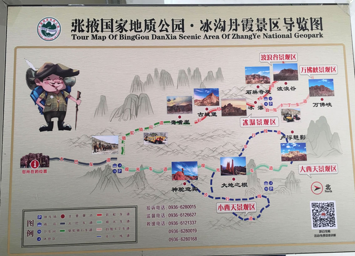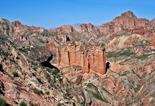 小西天景區(qū)位于冰溝景區(qū)的東部,主要景觀為一條滿布丹武地貌的山溝,均為長(zhǎng)約800米的山體游步道,游覽時(shí)間大約60分鐘。主要景點(diǎn)有神駝?dòng)e、紅層地貌、泥瀑布、泥鐘乳、泥葡萄、桃園結(jié)義(新娘出嫁、樓蘭商駝、千里相會(huì))、玄武門(mén)(龜蛇鎖江)、紅纓帽(裕固族帽子)、陰陽(yáng)柱(大地之根)、石雞(筆架峰)、七女峰(侍女拜佛)、僧人崖、金蟾拜佛、大佛石等,最有名氣的有神駝?dòng)e、桃園三結(jié)義、玄武門(mén)、蘑菇石、大地之根、七女峰、望夫石等景觀。