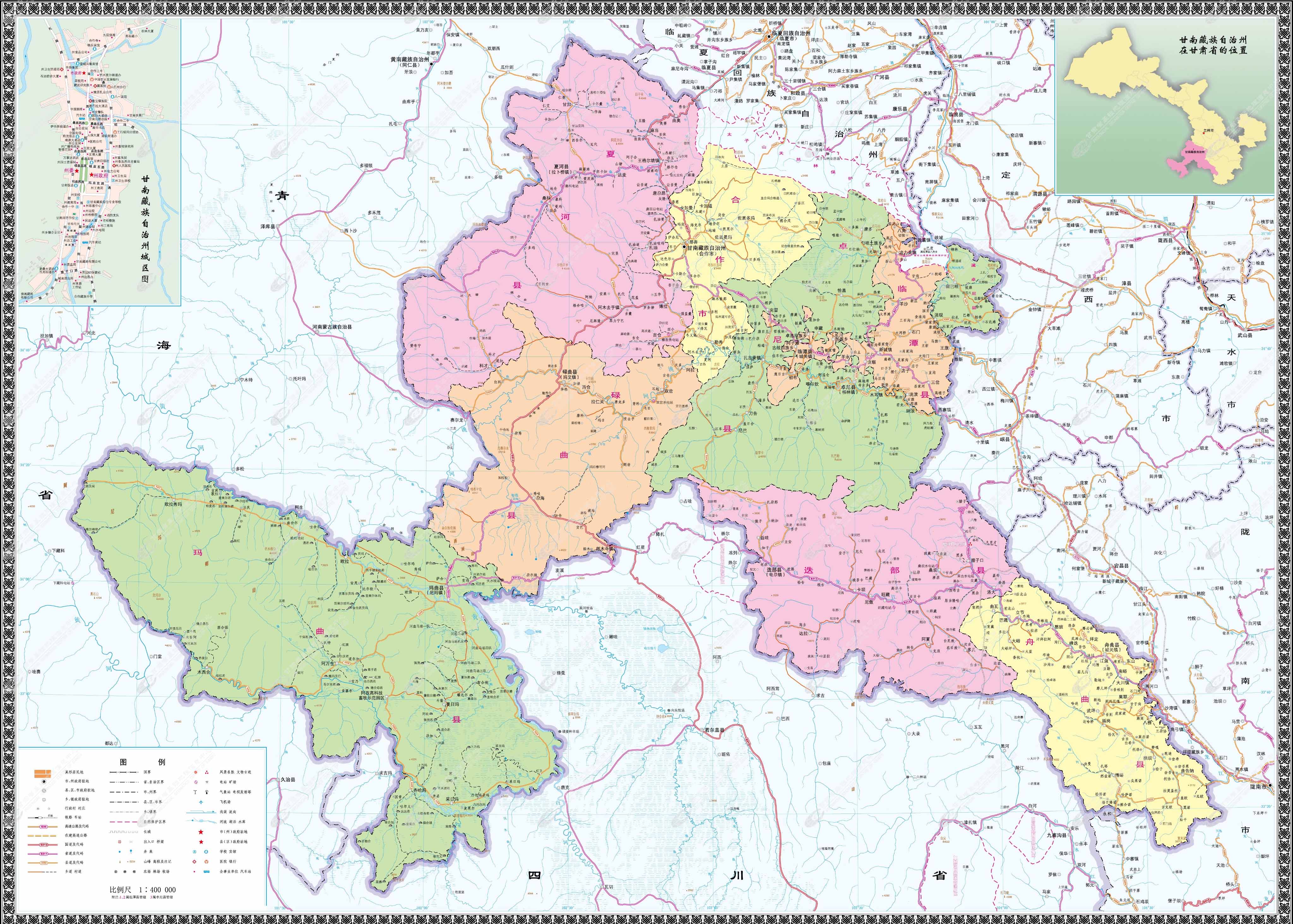 甘南藏族自治州,南與四川阿壩州相連,西南與青海黃南州、果洛州接壤,東部和北部與隴南市、定西市、臨夏州毗鄰,
