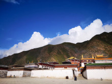 拉卜楞寺,位于甘南藏族自治州夏河縣城西0.5公里處。本名噶丹夏珠卜達(dá)吉益蘇奇貝瑯,簡稱扎西奇寺,是我國藏傳佛教(即喇嘛教)格魯派(黃教)六大寺院之一,一般稱拉卜楞寺。第一世嘉木樣阿旺宋哲大師創(chuàng)建于清康熙四十八年(1709)。康熙五十三年(1714)建立“拉章”(即嘉木樣佛宮),“拉章”音變?yōu)椤袄防恪,意為寺院最高活佛府邸?/p>