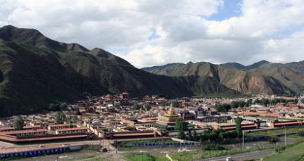 寺院坐北向南,占地總面積86.6萬平方米,建筑面積40余萬平方米,主要殿宇90多座,包括六大學(xué)院、16處佛殿、18處昂欠(大活佛宮邸)、僧舍及講經(jīng)壇、法苑、印經(jīng)院、佛塔等,形成了一組具有藏族特色的宏偉建筑群,房屋不下萬間。