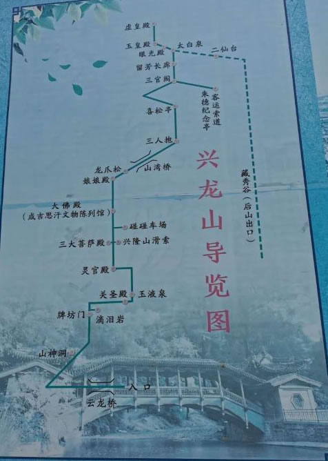 唐宋時(shí),興隆山神殿甚多,香火旺盛,稱“洞天福地”。清代時(shí),這里廟宇樓閣,或依山面壁,或深藏密林,畫棟雕梁,飛檐紅柱,甚為壯觀。后大多被毀,僅存清代所建飛跨興隆峽的云龍橋(臥橋)一座。清康熙年間取復(fù)興之意,改名“興隆山”。本世紀(jì)五十年代,全山亭臺(tái)樓閣以及廟宇達(dá)70多處,景點(diǎn)24處,成為佛、道勝地。
