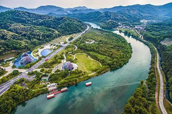 四周群山環(huán)抱,層巒疊翠,蜿蜒曲折的流溪河像一條飄帶縱貫其間。這里遍種梅、李、荔枝、松、柏、玉蘭等,到處綠竹成林,風(fēng)景秀麗,四季如春。加上樓臺、小亭、曲廊,參差錯落,臨溪倒影,將區(qū)內(nèi)環(huán)境點綴得格外幽雅,給人以恬靜的美感。