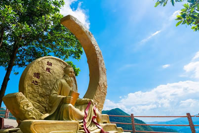 大月老,別名柴道煌,民間又稱月下老人、月下老兒,宋州宋城人,是中國(guó)民間傳說(shuō)中主管姻緣的仙人,對(duì)人間男女以紅繩相系,確定姻緣。觀音山上的月老臺(tái)位于吉祥路中段,高3米,由坐式老人及半月組成,在月下倚布囊、坐于階上、向月檢書的老人正是執(zhí)掌天下之婚牘,維系千里之姻緣的月老。