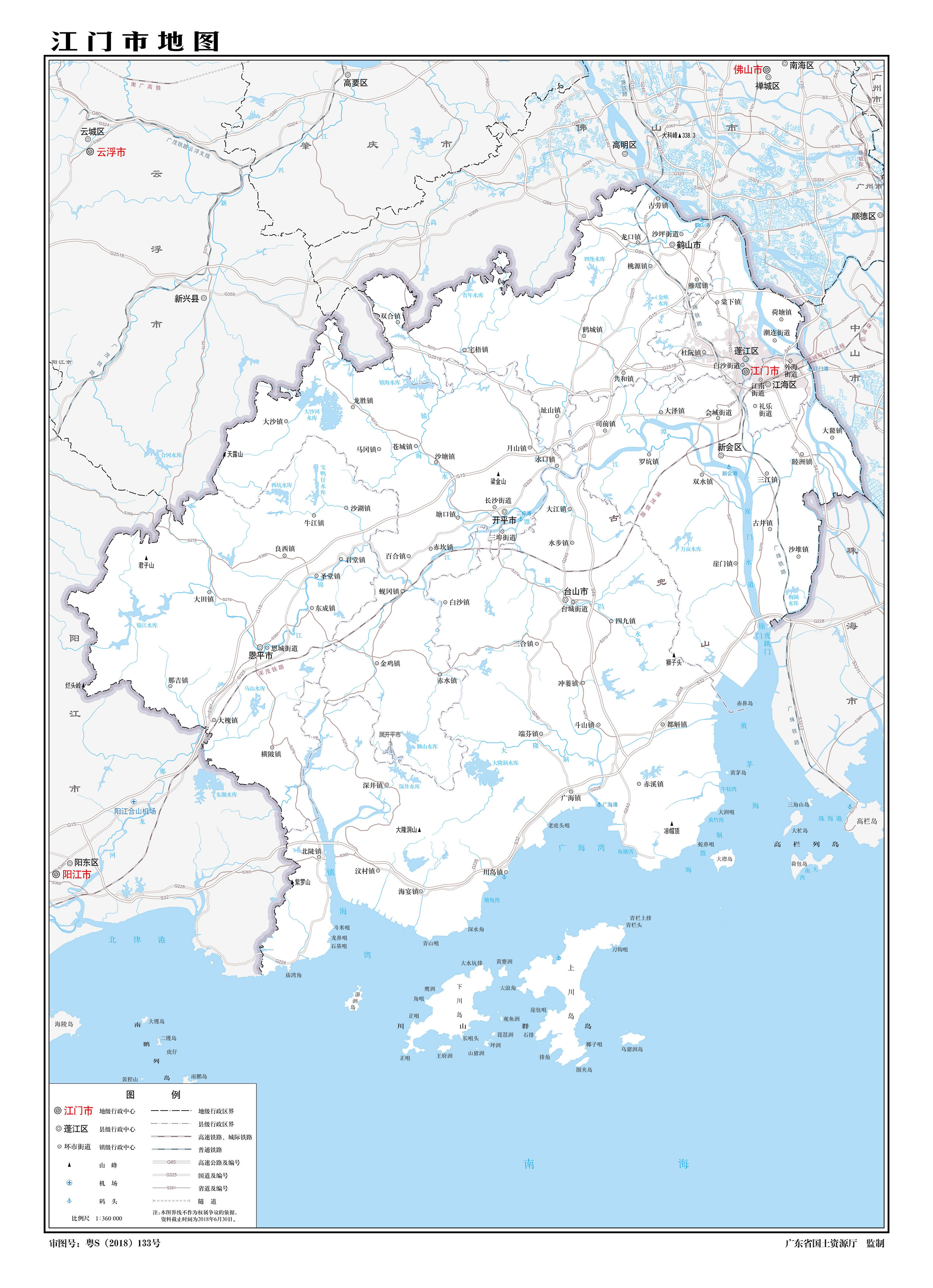 臺山市 面積3285.91平方千米,人口94.1萬。轄1個(gè)街道、16個(gè)鎮(zhèn)。