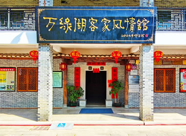 萬綠湖客家風情館,于2006年10月建成開館,客家風情館以客家特有的騎樓建筑風格進行設計施工,館名“萬綠湖客家風情館”由中國漫畫家華君武題寫,館內介紹著客家的風俗習慣及客家日常生活物件,展廳共分2層,建設面積近2000平方米,建筑風格完全按照傳統(tǒng)客家建筑設計。