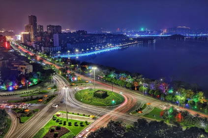 肇慶市地處廣東省中西部,是東南沿海通往西南各省的重要交通樞紐。肇慶城區(qū)的七星巖,素有“嶺南第一奇觀”的美譽;鼎湖山是國家級自然保護區(qū)。以星湖風(fēng)景區(qū)為中心,沿西江、綏江溯江而上,盤龍峽、“天下第一石”、千層峰、廣寧竹海大觀、燕巖等景點次遞展開,構(gòu)成了千里旅游走廊的絢麗畫卷。