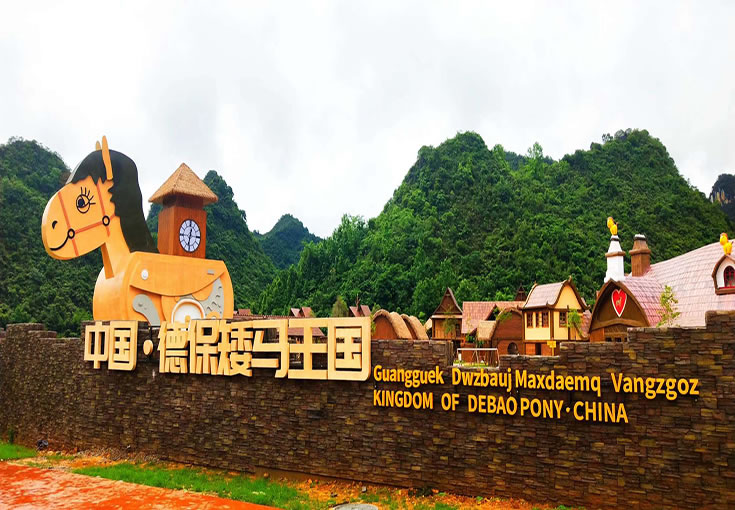 德保矮馬王國景區(qū)位于德?h燕峒鄉(xiāng)興旺村坡寧屯(吉星巖AAAA景區(qū)出口處),一期開發(fā)建筑面積400畝,建設(shè)內(nèi)容有矮馬王國競技場、萌寵部落、矮馬小鎮(zhèn)、矮馬游樂園、矮馬劇場、木屋酒店、帳篷酒店等項目,涵蓋動漫賽事、親子游樂、互動體驗、教育科普、文化演藝等于一體。矮馬王國景區(qū)從德保矮馬“萌”的核心特色出發(fā),將德保矮馬IP化,以親子卡通化的形象表現(xiàn)手法,創(chuàng)意“矮馬保保”的主人公形象,將德保矮馬打造成為華南萌主;以故事場景化的主題敘事手法,構(gòu)建“矮馬保保”和他的小伙伴們的王國樂園,打造以德保矮馬為IP的主題家庭親子旅游目的地。讓孩子置身于童話故事中,兼具開發(fā)智力、認識自然的同時,還能兼顧大人玩耍與視覺審美,是全家人親子互動、休閑娛樂的地方。