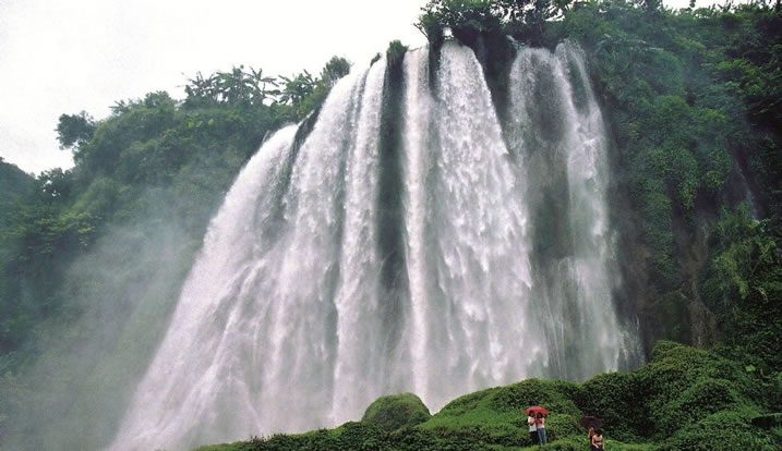 三疊嶺瀑布,位于靖西市湖潤鎮(zhèn)新靈村,西北距市區(qū)30千米,因地處三疊嶺而得名。瀑布落差100米,寬30多米。
