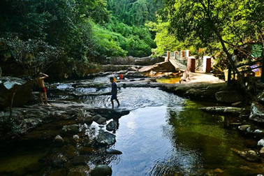 抵達景區(qū)后,乘木船游覽龍珠湖(自費,10元/人;30分鐘);到餐館吃中餐(1小時);然后在竹林、亞熱帶風情林漫步,吸氧,感受原始森林的清新氣息(20分鐘)到了石橋,游人可照相留影、觀山溪野魚(15分鐘)再走10分鐘,即可到達第一個山泉沐浴點仙女池,傳說其水能使肌膚更加細膩嫩滑,最適合女性沐浴。(40分鐘)。