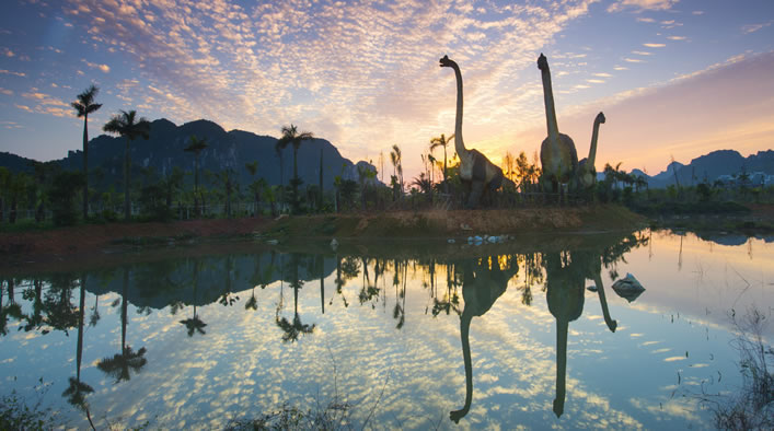龍谷灣恐龍主題公園是國家AAAA級旅游景區(qū),位于扶綏縣上龍大道999號,距南友高速公路扶綏出口3公里。占地面積3000畝,是龍谷灣旅游休閑度假區(qū)的一期工程,于2017年元旦建成開業(yè)。公園由遠(yuǎn)古呼喚、多媒體體驗中心、動感地帶、兒童王國、恐龍谷等板塊組成,是集科普研學(xué)、旅游觀光、游樂體驗為一體的亞洲最大的恐龍主題公園。龍谷灣旅游休閑度假區(qū)瞄準(zhǔn)“3.5小時經(jīng)濟(jì)圈”休閑度假市場,突出恐龍文化和壯族民俗文化,規(guī)劃建設(shè)主題公園、特色小鎮(zhèn)、商業(yè)綜合體、田園綜合體、康養(yǎng)旅居城、體育旅游、智慧旅游、國際教育、民宿、汽車旅游營地等,形成龍谷灣恐龍公園、國際慢生活商業(yè)中心、錦繡八桂田園綜合體、國際酷玩休閑世界、國際共享康養(yǎng)旅居城五大區(qū)域。