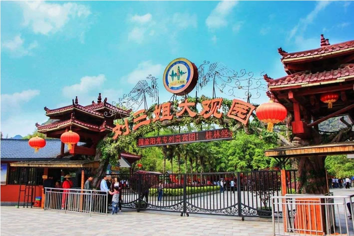 劉三姐大觀園景區(qū)位于桂林城區(qū)西部秀峰轄區(qū)獅子巖,坐落在桃花江畔,東靠西山,西望甲山,前臨漓江的支流桃花江,景區(qū)以壯族歌仙劉三姐命名,是一座展示劉三姐文化及廣西少數(shù)民族文化經(jīng)典的主題游園,2012年8月,被評(píng)為國家4A級(jí)旅游景區(qū)。