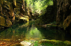 在虹橋之上約100余米。峽長40米,兩旁峭壁高聳,中間一條小路,僅容1人通過。峽中習(xí)習(xí)生風(fēng),仰首只見藍(lán)天一線,因此又叫“一線天”。民間傳說,有緣份的人往往可以在在這里和神仙相會。長峽南端入口處石壁上,刻有寬能法師題寫的“神仙峽”三個大字。原來,會仙峽又叫神仙峽。