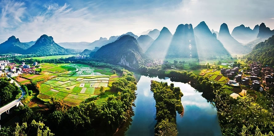 古龍河景區(qū),位于廣西宜州祥貝鄉(xiāng)古龍村,這里是廣西最后的山水凈土,有“世外仙境”的美譽(yù),是國(guó)家AAA級(jí)景區(qū)、中國(guó)最美意境旅游景區(qū)。古龍河山清水秀,竹翠峰美,游客乘坐竹筏順?biāo),可以觀(guān)賞到中國(guó)最大的壯族水車(chē),體驗(yàn)到魚(yú)鷹捕魚(yú)、江中漁韻的詩(shī)情畫(huà)意,欣賞到壯族古老的圖騰巖畫(huà),感受到最有民俗特色的壯族情歌。在當(dāng)?shù)亓鱾髦?ldquo;桂林山水甲天下,古龍山水賽桂林”的說(shuō)法。