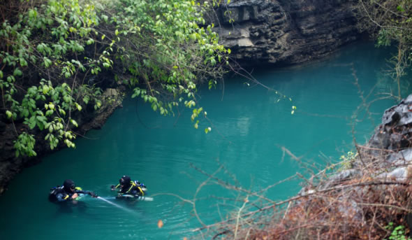 水文 都安瑤族自治縣地處巖溶山區(qū),巖石裂隙發(fā)育,落水洞、天窗、漏斗等星羅棋布,地上蓄水條件差,故雨量雖然豐沛但大部分都往地下滲漏,地表水系很不發(fā)育,地下水埋藏深。縣境內(nèi)地表河流有紅水河、刁江、澄江和拉仁河,均屬珠江流域西江水系紅水河干支流。集雨面積在20平方千米以上的河流共10條,其中正常流量大于25立方米每秒的有紅水河、刁江、澄江。