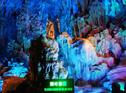 洞內(nèi)有大量奇麓多姿、玲瓏剔透的石筍、石乳、石柱、石幔、石花,琳瑯滿目,組成了獅嶺朝霞、紅羅寶帳、盤龍寶塔、原始森林、水晶宮、花果山等景觀,令游客目不暇接,如同仙境,被譽為 “ 大自然的藝術(shù)之宮 ”。