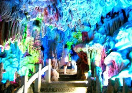 蘆笛巖是整個漓江風(fēng)景名勝區(qū)的重要組成部分,1959年籌建,1962年開放,1982年11月成為國務(wù)院頒布的第一批國家重點風(fēng)景名勝區(qū)。它擁有大自然賦予桂林山水清奇俊秀的巖溶風(fēng)貌。蘆笛巖洞深240米,游程500米。約70萬年前,因地下水沖刷和溶蝕,含碳酸鈣的滴水、流水與積水,因水分揮發(fā),二氧化碳重新沉淀,形成了千姿百態(tài)的鐘乳石奇觀。自洞頂垂下的叫石乳,自地上向上生長的叫石筍,石乳與石筍連接成石柱、石幔、石枝、石花、石瀑等;一些石頭中空,敲擊時發(fā)出的聲音清越入耳,又稱石琴、石鼓、石鐘;回乳石中含方解石微粒,在洞內(nèi)五彩燈光的映照耀反光,便形成"鉆石山"、"高峽飛瀑"等奇觀。