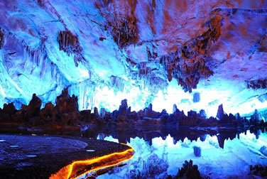 “桂林山水甲天下,蘆笛美景堪最佳!碧J笛巖是桂林山水一顆璀璨的明珠,蘆笛巖位于光明山南側(cè)山腰,洞深240米,游程近500米,是一處景致高度集中、景物極盡造化的神奇游覽佳境。在這個奇妙的巖洞中,琳瑯滿目的鐘乳石、石筍、石柱、石幔、石花擬人狀物,惟妙惟肖,構(gòu)成了三十多處景觀,有“紅羅寶帳”、“高峽飛瀑”、“盤龍寶塔”、“原始森林”、“簾外云山”、“水晶宮”等,可謂移步成景,步移景換。整個巖洞猶如一座用寶石、珊瑚、翡翠雕砌而成的宏偉、壯麗的地下宮殿。