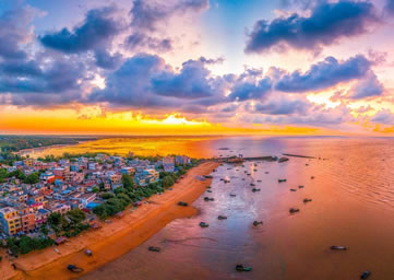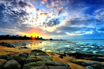 傍晚在松軟潔凈的沙灘上拾貝捉蝦,收獲一份意外的驚喜,享受自己辛勤勞動的成果,不必擔(dān)心夕陽西下,在暮色蒼茫的漁村下榻,潔凈簡樸的漁家旅店是濱海月色星光下最溫馨的家。