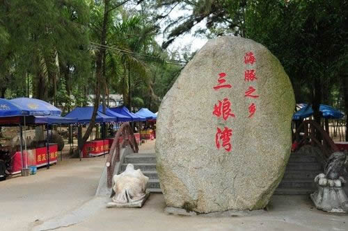 三娘灣景區(qū)以碧海、沙灘、奇石、綠林、漁船、漁村、海潮、中華白海豚而著稱,擁有“中華白海豚之鄉(xiāng)”美稱,由三娘石、母豬石、烏雷嶺、威德寺等景觀景點組成,是著名電影《海霞》的外景拍攝地和中央電視臺MTV《灣灣歌》和20集電視劇《海藤花》的拍攝基地。