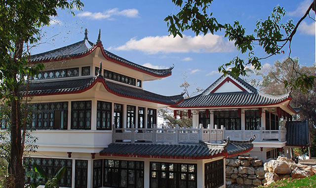 梁羽生公園坐落在蒙山縣城區(qū)東南角的鰲山上,始建于2005年10月,占地60多畝。園名為武俠小說作家金庸題書,大門兩邊有鄺健行教授撰、馬國權(quán)先生書寫的對聯(lián):“舉世陳言始著新文開俠統(tǒng);一園生意爭鳴翠羽繞雕梁”。山上原建有一座五層寶塔,蒙山人習慣稱作文筆。